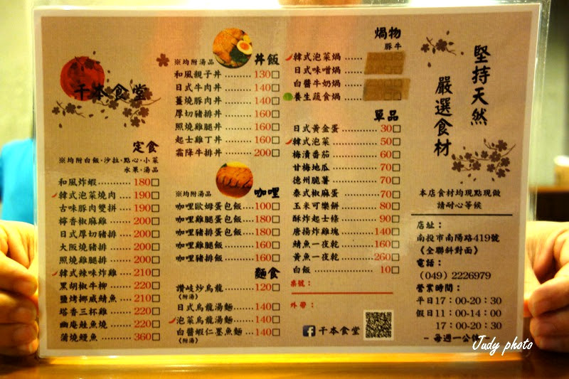 千本食堂我終於在開了一年多之後來到這一家日式料理用餐了,因為剛新開幕時我要去這間用餐,打電話去詢問有沒有提供素食的餐點,結果竟然是連素炒烏龍都沒有,所以就醬等到他們重新裝潢後看到新的菜單太感動了,一問之後有少道主餐可點用喔~~實在太棒了~!!
