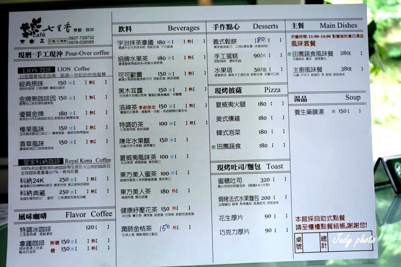 七里香景觀咖啡菜單