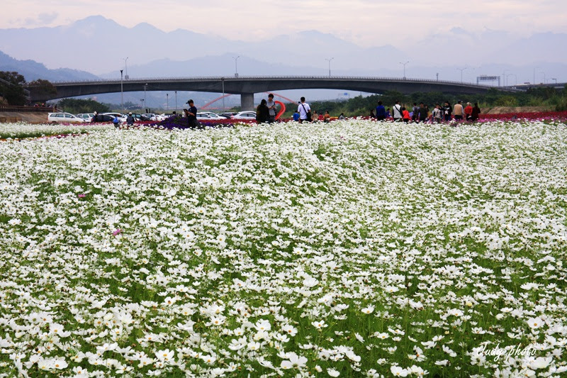 哈哈~你真的沒有看錯,在南投也有佔地數公傾大的花海了,如同花毯般迷人,真是太美麗了~從河岸上看過去如畫般的夢幻美的不像話啦~要賞南投燈會的朋友別忘了早點出發看美景賞花燈吃美食~
