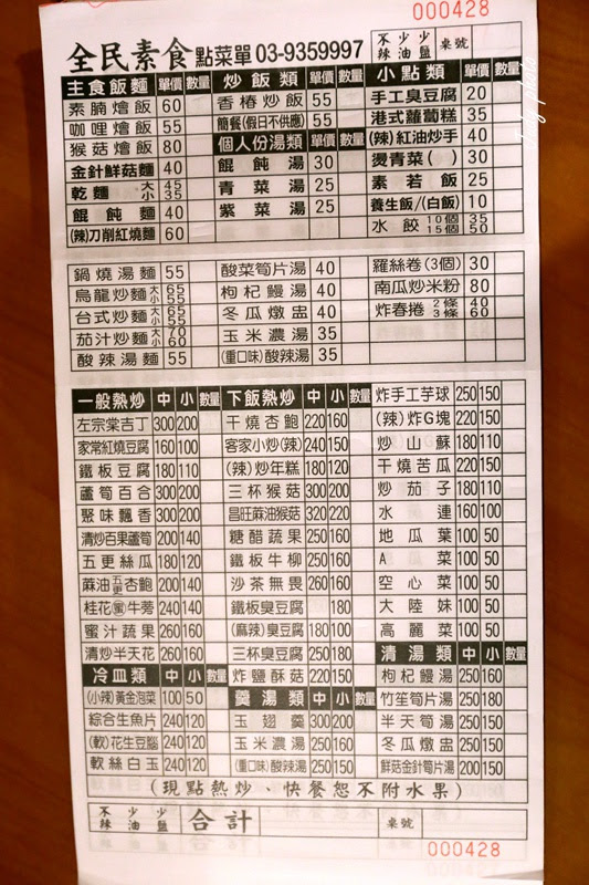 | 全民素食餐廳菜單 |