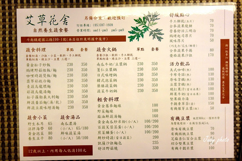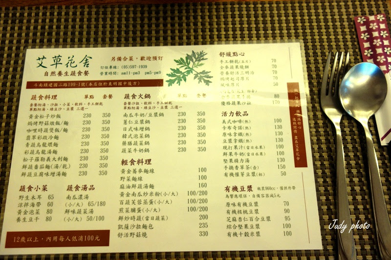 | 艾草花舍菜單 |