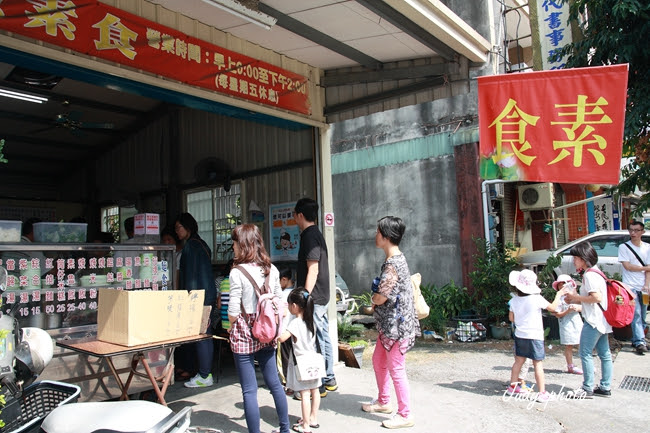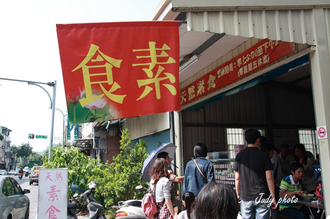 集集素食小吃-天然素食,難道是排隊美食嗎?消費者大排長籠工作人員四五個人,忙得不可開交啊~這麼樣的素食小吃,我還是頭一次看到,心想會不會因為是假日的關係,很多遊客所以人特別多,可是後來又觀察了一下來吃消費的不止是遊客也有不少當地的居民喔~