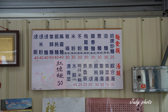這讓在排隊的我信心大增了,我也要來吃看看到底是什麼美食小吃這麼好吃,看到菜單我覺得和其他素食沒有太多的不同,也是一些麵食和飯菜,我點了筒仔米糕、麻醬麵、和餛飩湯麵、紫菜湯....,排到位置後很快點的食物都來了~