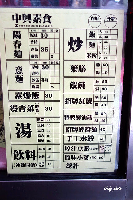 | 中興素食菜單 |