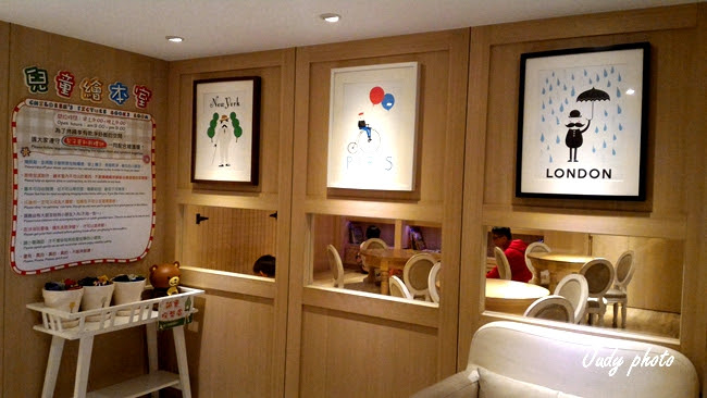 ,不過這一次是來開會,還是下次吧~進門馬上有服務人員來協助招待點餐,因為沒有訂位所以在一旁的侯位區備有雜誌可閱讀,另一側還有特色伴手禮區也可在等侯時逛逛,這兒的裝潢除了新潮還帶有一些綠意和另兩間分店的風格不太一樣,整体的內部空間規畫也不錯,有包廂的服務,在上樓的角落也都有做了樓梯間的藝術裝置,而且還有兒童遊憩室有閱讀區環境整理得很好,很合適帶小孩來這兒用餐消費喔~餐點的部份價位算中上價位,但是份量也是很足夠,吃到後面的點心就已經很撐了~很合適家庭朋友聚餐的地點喔~!!