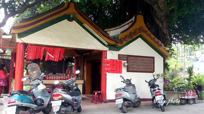| 一般人會把機車就放這兒,往上看有一顆歷史悠久的老榕樹~ |