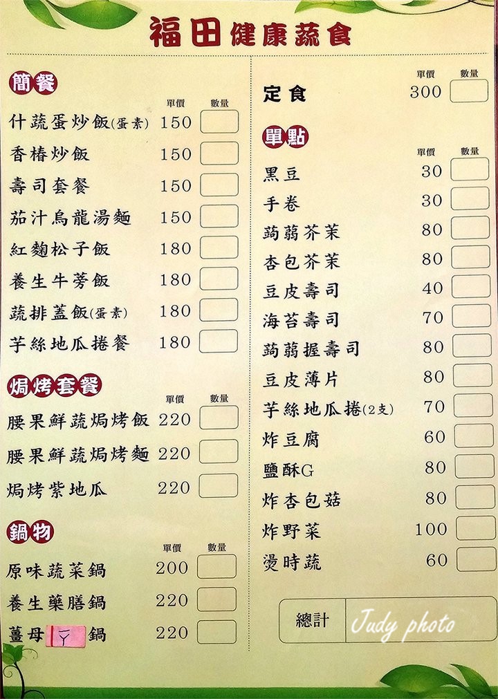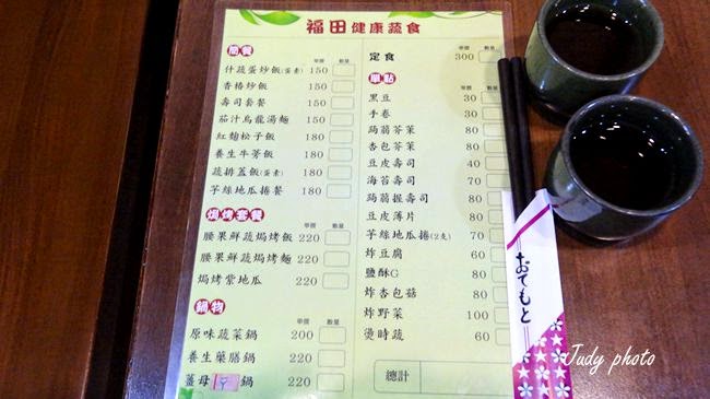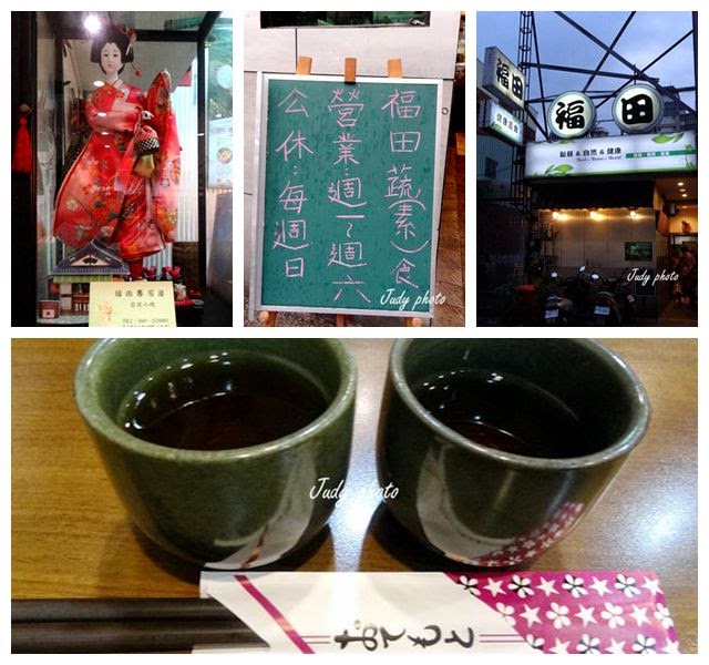 【草屯素食】福田壽司屋日式小吃料理,我期待了好久,終於有一家純素的日式料理誕生了,簡單室外招牌傳達日式蔬食的意念,穿過小長廊來到店門口,一進門老闆娘的熱情笑咪咪讓人 看了很歡喜,隨即遞上菜單及熱呼呼的麥汁,仔細一看這兒可以盡情的享用到日式壽司、手捲、定食、招牌炒烏龍及鍋物...