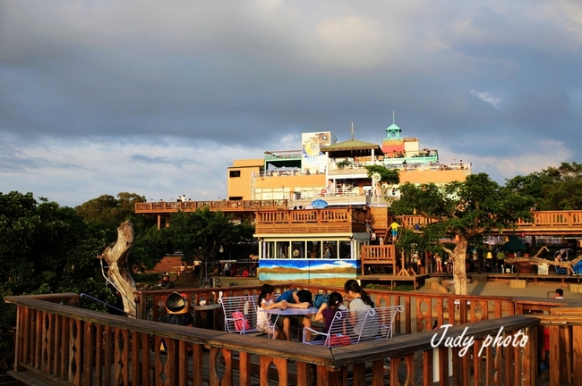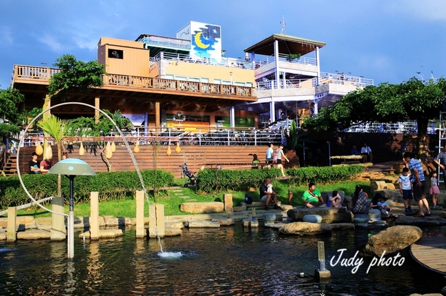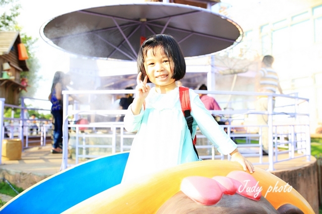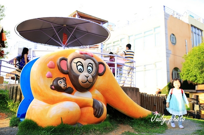 然後在這廣大的園區裡設了不少小孩可以玩的設施,例如玩泡泡水、攀爬溜滑梯、戲水池餵魚(購買奶瓶式飼料餵魚)、動物有羊駝、小馬、巨大的烏龜....小孩玩得不亦悅乎~~