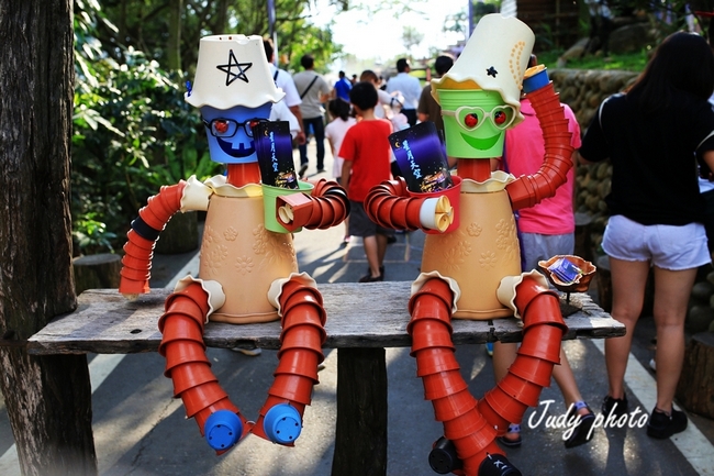 一進門就看到大排長籠的人潮,在售票口一進門就在看到一個超大噴霧式電風扇有著濃濃的香茅味,站在那兒吹著風好舒服而且一來可防蚊二來可消暑實在很棒,售票口附近兩側還有不同的小動物就出現在眼前讓小朋友一進門就很驚喜